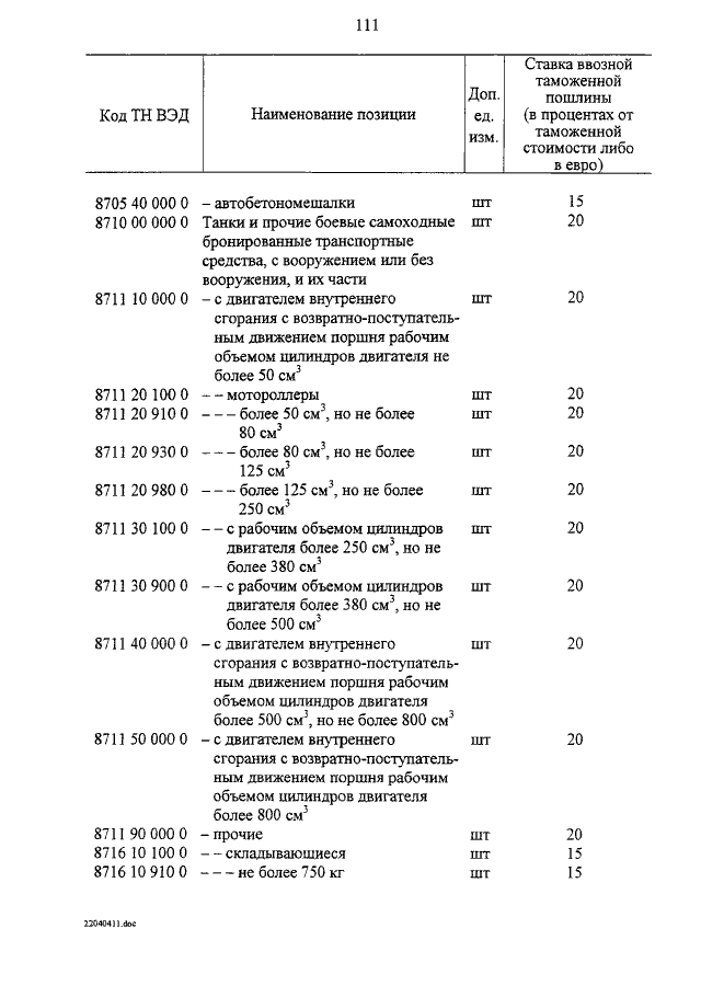 "О ВНЕСЕНИИ ИЗМЕНЕНИЙ В ТАМОЖЕННЫЙ ТАРИФ РОССИЙСКОЙ ФЕДЕРАЦИИ"