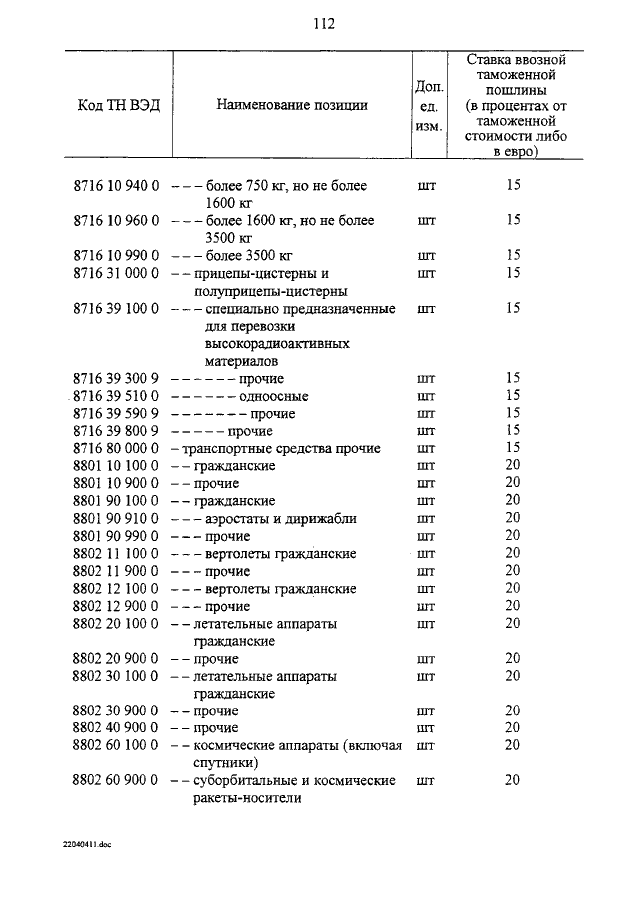 "О ВНЕСЕНИИ ИЗМЕНЕНИЙ В ТАМОЖЕННЫЙ ТАРИФ РОССИЙСКОЙ ФЕДЕРАЦИИ"