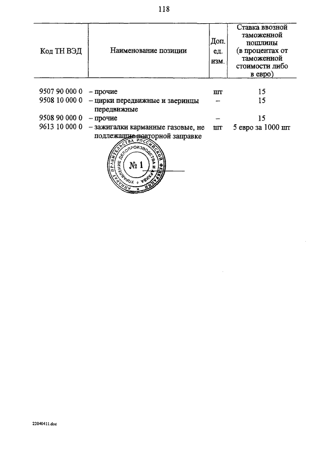 "О ВНЕСЕНИИ ИЗМЕНЕНИЙ В ТАМОЖЕННЫЙ ТАРИФ РОССИЙСКОЙ ФЕДЕРАЦИИ"