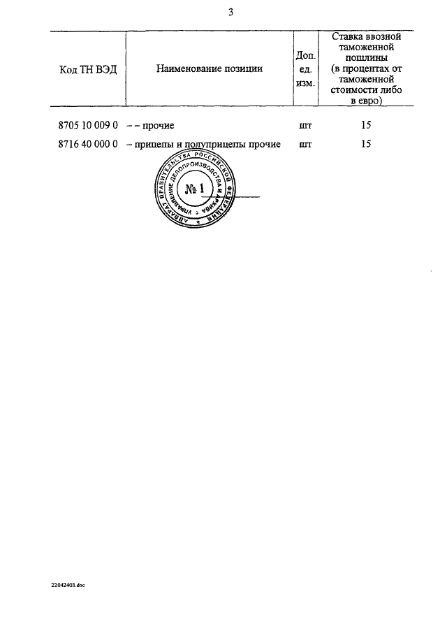 "О ВНЕСЕНИИ ИЗМЕНЕНИЙ В ТАМОЖЕННЫЙ ТАРИФ РОССИЙСКОЙ ФЕДЕРАЦИИ"