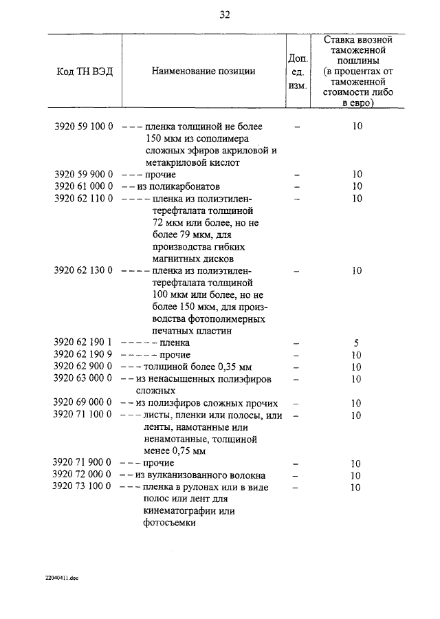 "О ВНЕСЕНИИ ИЗМЕНЕНИЙ В ТАМОЖЕННЫЙ ТАРИФ РОССИЙСКОЙ ФЕДЕРАЦИИ"