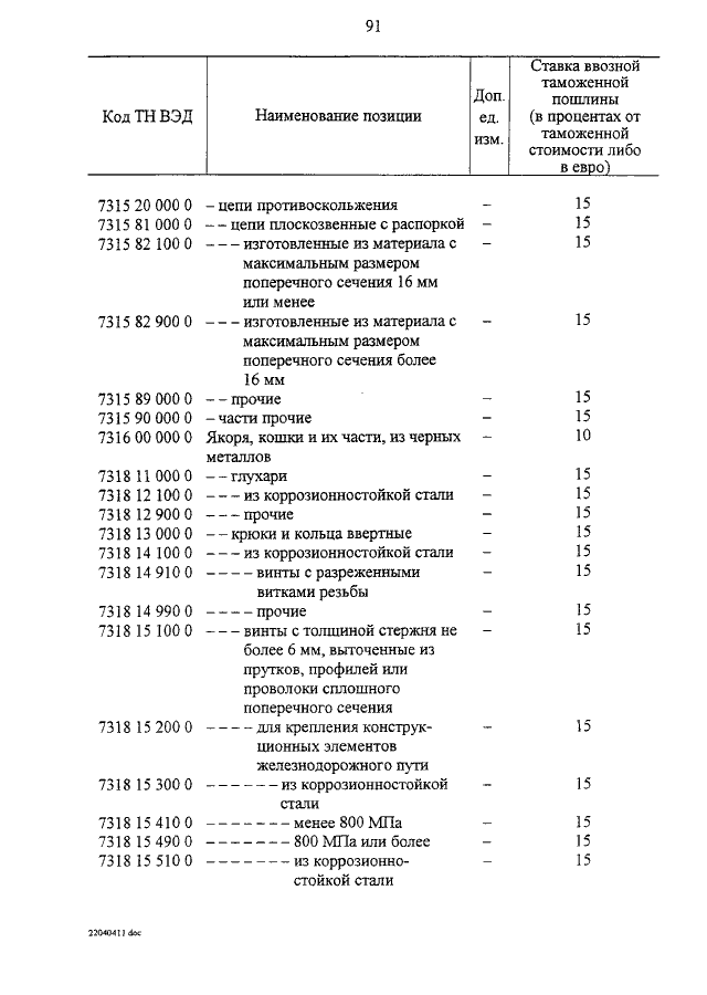 "О ВНЕСЕНИИ ИЗМЕНЕНИЙ В ТАМОЖЕННЫЙ ТАРИФ РОССИЙСКОЙ ФЕДЕРАЦИИ"