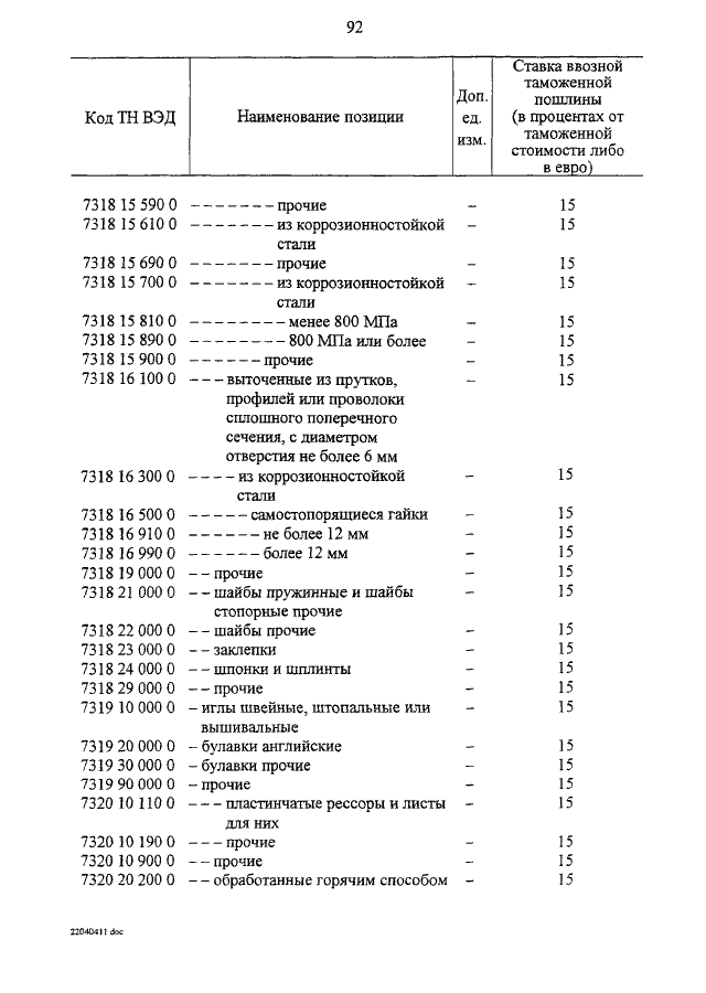 "О ВНЕСЕНИИ ИЗМЕНЕНИЙ В ТАМОЖЕННЫЙ ТАРИФ РОССИЙСКОЙ ФЕДЕРАЦИИ"