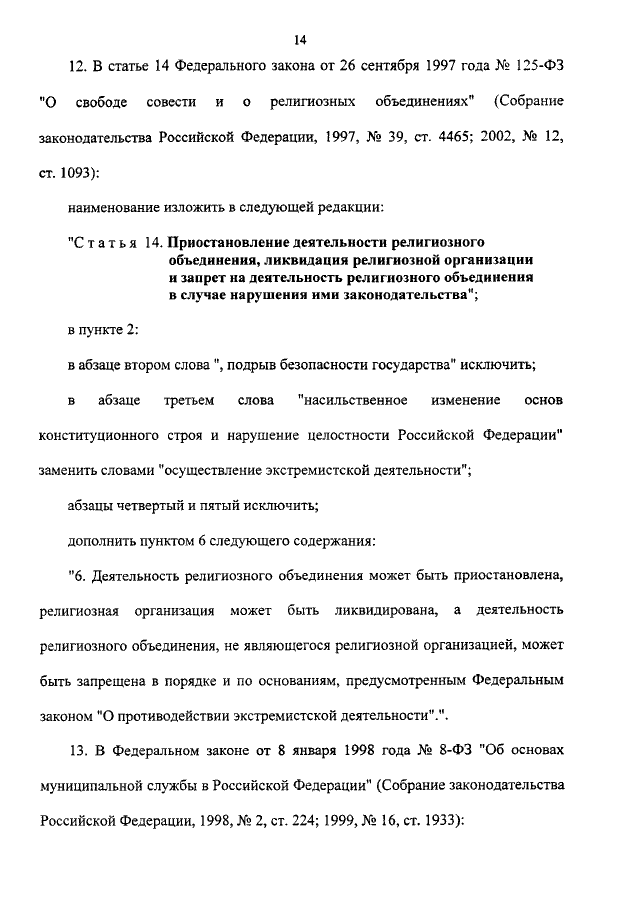 "О ВНЕСЕНИИ ИЗМЕНЕНИЙ И ДОПОЛНЕНИЙ В ЗАКОНОДАТЕЛЬНЫЕ АКТЫ РОССИЙСКОЙ ФЕДЕРАЦИИ В СВЯЗИ С ПРИНЯТИЕМ ФЕДЕРАЛЬНОГО ЗАКОНА "О ПРОТИВОДЕЙСТВИИ ЭКСТРЕМИСТСКОЙ ДЕЯТЕЛЬНОСТИ"