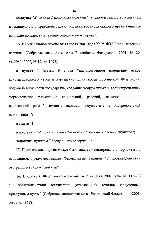 "О ВНЕСЕНИИ ИЗМЕНЕНИЙ И ДОПОЛНЕНИЙ В ЗАКОНОДАТЕЛЬНЫЕ АКТЫ РОССИЙСКОЙ ФЕДЕРАЦИИ В СВЯЗИ С ПРИНЯТИЕМ ФЕДЕРАЛЬНОГО ЗАКОНА "О ПРОТИВОДЕЙСТВИИ ЭКСТРЕМИСТСКОЙ ДЕЯТЕЛЬНОСТИ"