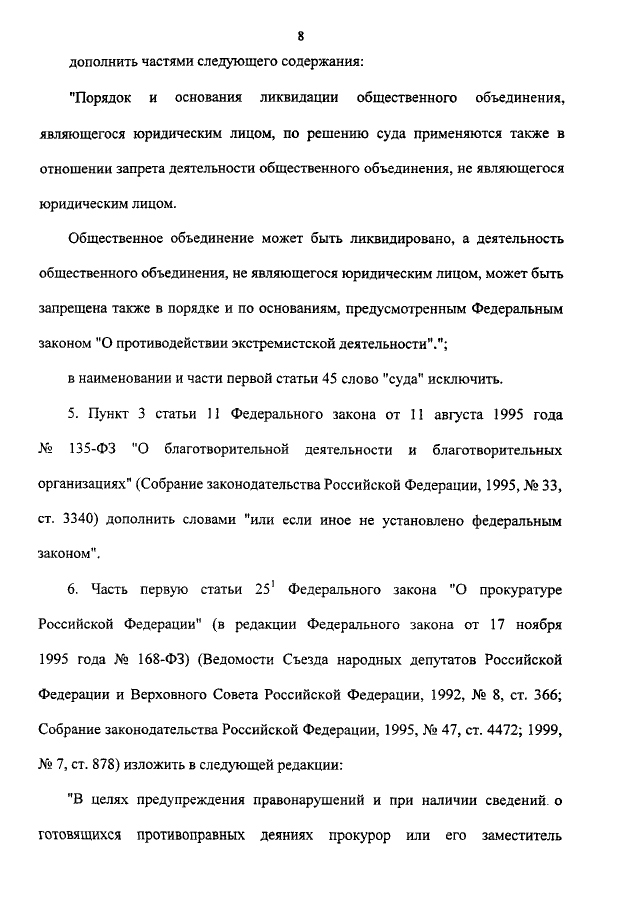 "О ВНЕСЕНИИ ИЗМЕНЕНИЙ И ДОПОЛНЕНИЙ В ЗАКОНОДАТЕЛЬНЫЕ АКТЫ РОССИЙСКОЙ ФЕДЕРАЦИИ В СВЯЗИ С ПРИНЯТИЕМ ФЕДЕРАЛЬНОГО ЗАКОНА "О ПРОТИВОДЕЙСТВИИ ЭКСТРЕМИСТСКОЙ ДЕЯТЕЛЬНОСТИ"