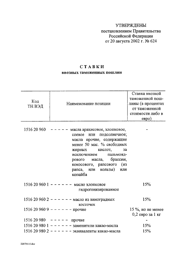 ПОСТАНОВЛЕНИЕ Правительства РФ от 20.08.2002 N 624
