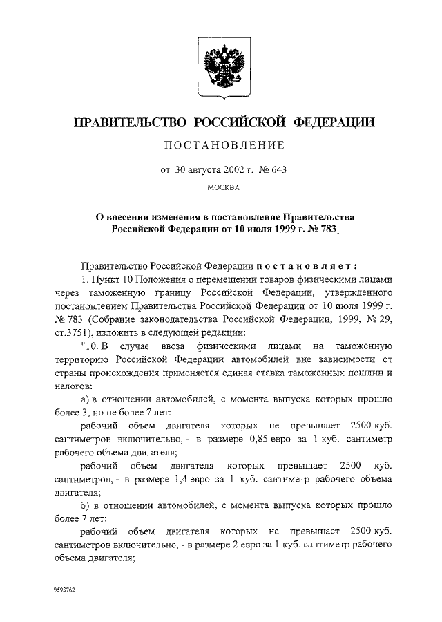 ПОСТАНОВЛЕНИЕ Правительства РФ от 30.08.2002 N 643