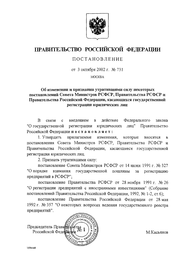ПОСТАНОВЛЕНИЕ Правительства РФ от 03.10.2002 N 731