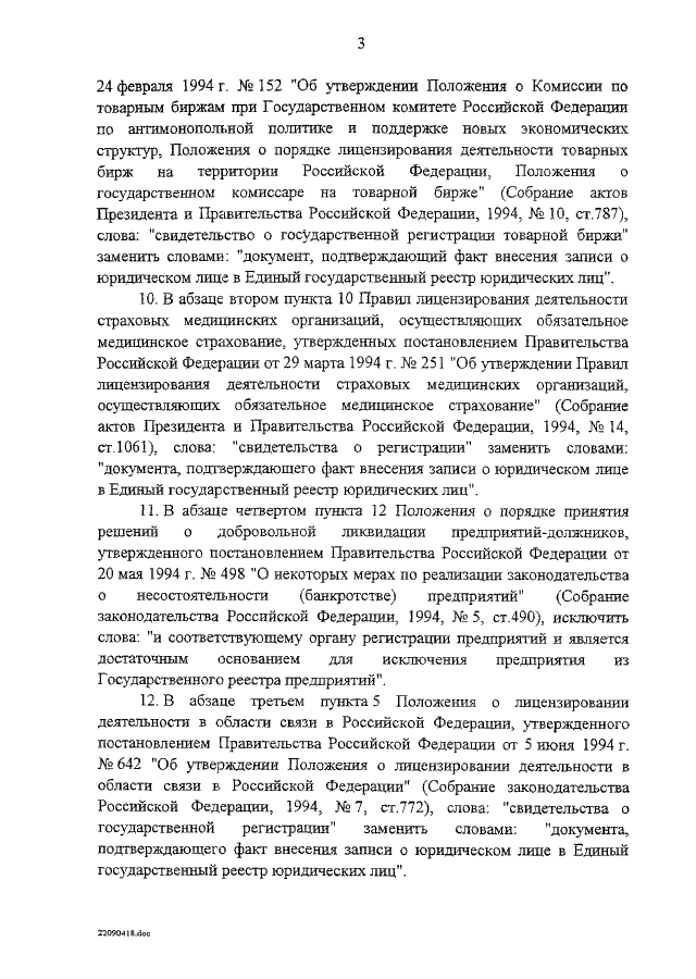 "ОБ ИЗМЕНЕНИИ И ПРИЗНАНИИ УТРАТИВШИМИ СИЛУ НЕКОТОРЫХ ПОСТАНОВЛЕНИЙ СОВЕТА МИНИСТРОВ РСФСР, ПРАВИТЕЛЬСТВА РСФСР И ПРАВИТЕЛЬСТВА РОССИЙСКОЙ ФЕДЕРАЦИИ, КАСАЮЩИХСЯ ГОСУДАРСТВЕННОЙ РЕГИСТРАЦИИ ЮРИДИЧЕСКИХ ЛИЦ"