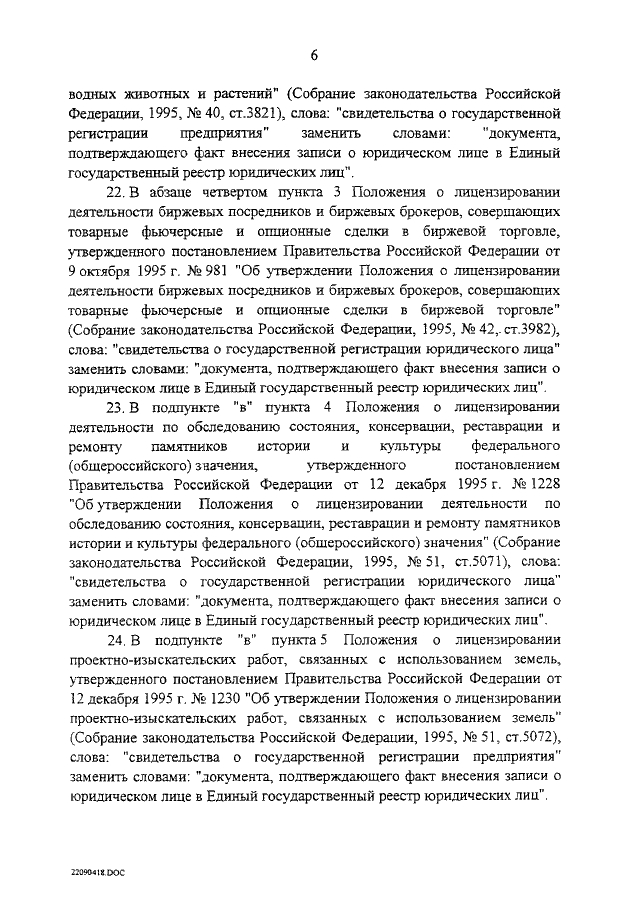 "ОБ ИЗМЕНЕНИИ И ПРИЗНАНИИ УТРАТИВШИМИ СИЛУ НЕКОТОРЫХ ПОСТАНОВЛЕНИЙ СОВЕТА МИНИСТРОВ РСФСР, ПРАВИТЕЛЬСТВА РСФСР И ПРАВИТЕЛЬСТВА РОССИЙСКОЙ ФЕДЕРАЦИИ, КАСАЮЩИХСЯ ГОСУДАРСТВЕННОЙ РЕГИСТРАЦИИ ЮРИДИЧЕСКИХ ЛИЦ"
