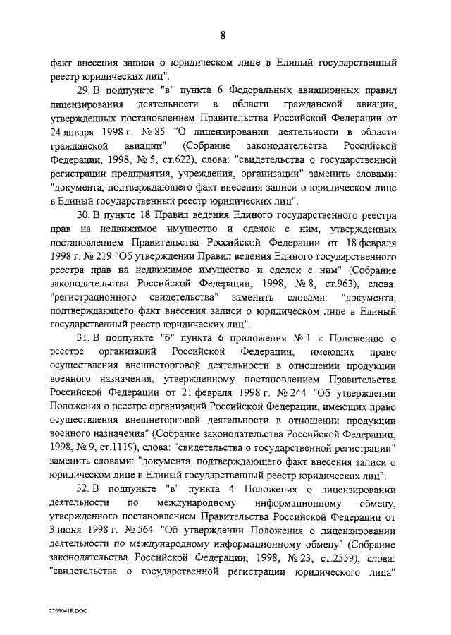"ОБ ИЗМЕНЕНИИ И ПРИЗНАНИИ УТРАТИВШИМИ СИЛУ НЕКОТОРЫХ ПОСТАНОВЛЕНИЙ СОВЕТА МИНИСТРОВ РСФСР, ПРАВИТЕЛЬСТВА РСФСР И ПРАВИТЕЛЬСТВА РОССИЙСКОЙ ФЕДЕРАЦИИ, КАСАЮЩИХСЯ ГОСУДАРСТВЕННОЙ РЕГИСТРАЦИИ ЮРИДИЧЕСКИХ ЛИЦ"