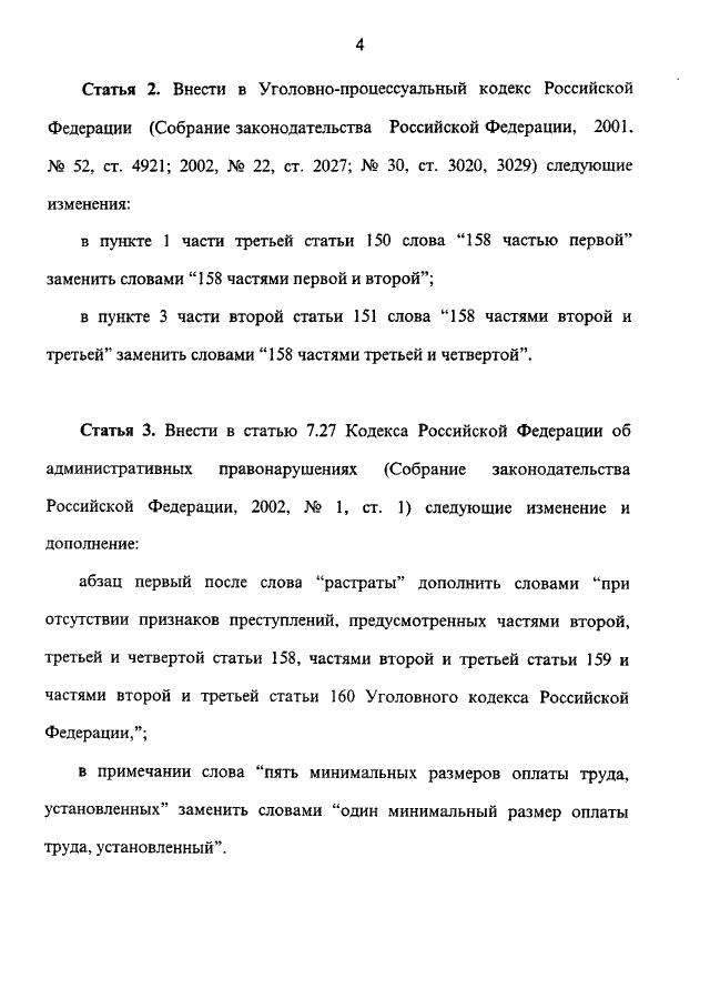 "О ВНЕСЕНИИ ИЗМЕНЕНИЙ И ДОПОЛНЕНИЙ В УГОЛОВНЫЙ КОДЕКС РОССИЙСКОЙ ФЕДЕРАЦИИ, УГОЛОВНО - ПРОЦЕССУАЛЬНЫЙ КОДЕКС РОССИЙСКОЙ ФЕДЕРАЦИИ И КОДЕКС РОССИЙСКОЙ ФЕДЕРАЦИИ ОБ АДМИНИСТРАТИВНЫХ ПРАВОНАРУШЕНИЯХ"
