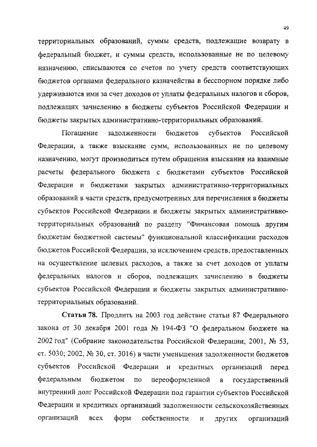 "О ФЕДЕРАЛЬНОМ БЮДЖЕТЕ НА 2003 ГОД"