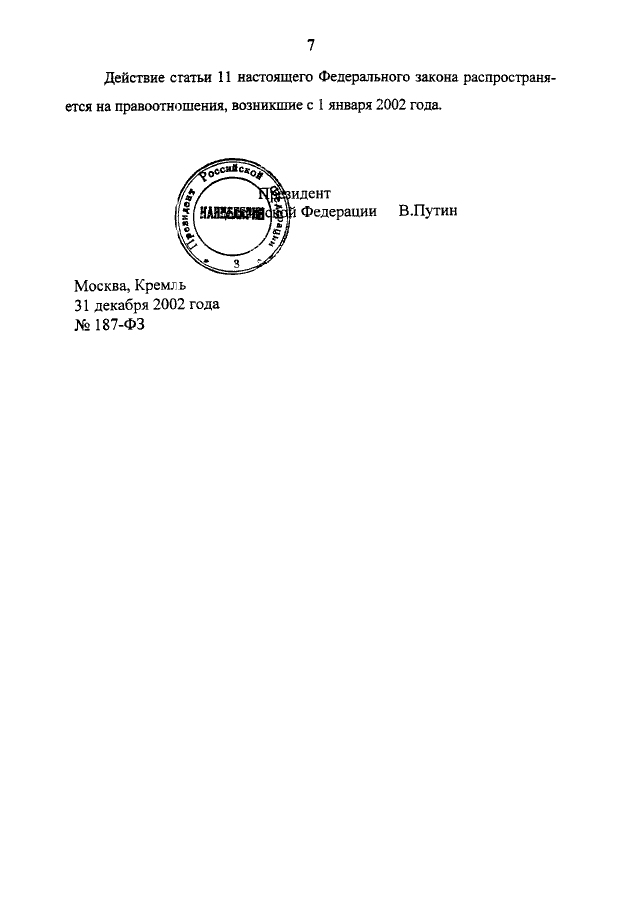 ФЕДЕРАЛЬНЫЙ ЗАКОН от 31.12.2002 N 187-ФЗ
