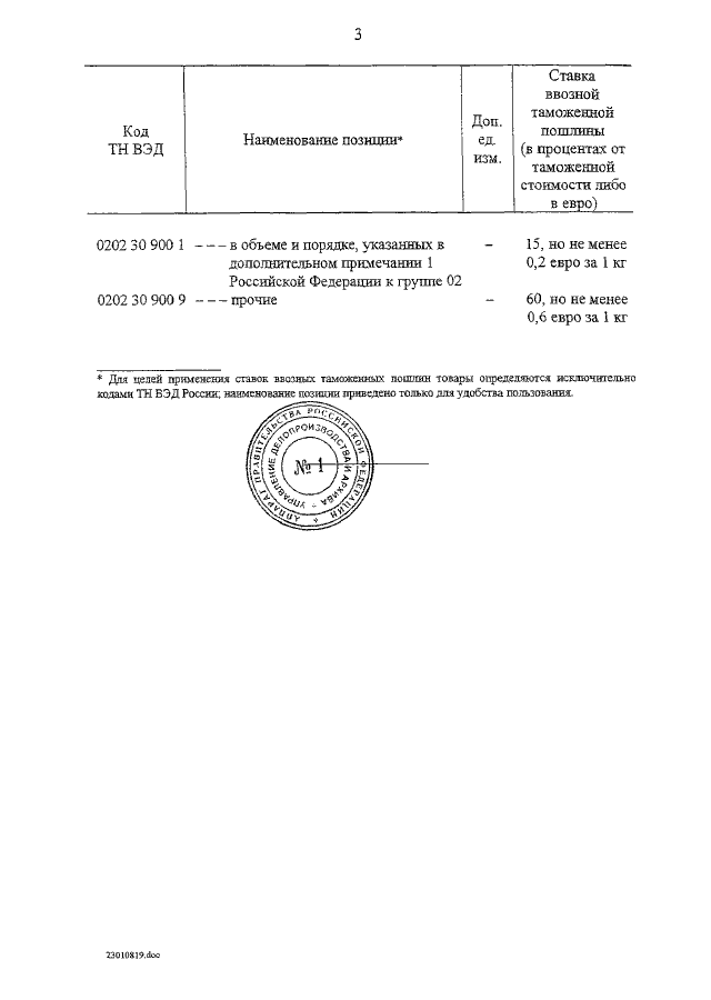 "О ВНЕСЕНИИ ИЗМЕНЕНИЙ В ТАМОЖЕННЫЙ ТАРИФ РОССИЙСКОЙ ФЕДЕРАЦИИ"