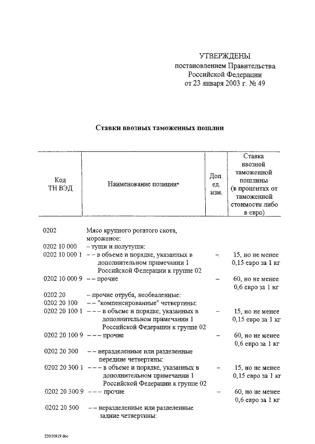ПОСТАНОВЛЕНИЕ Правительства РФ от 23.01.2003 N 49