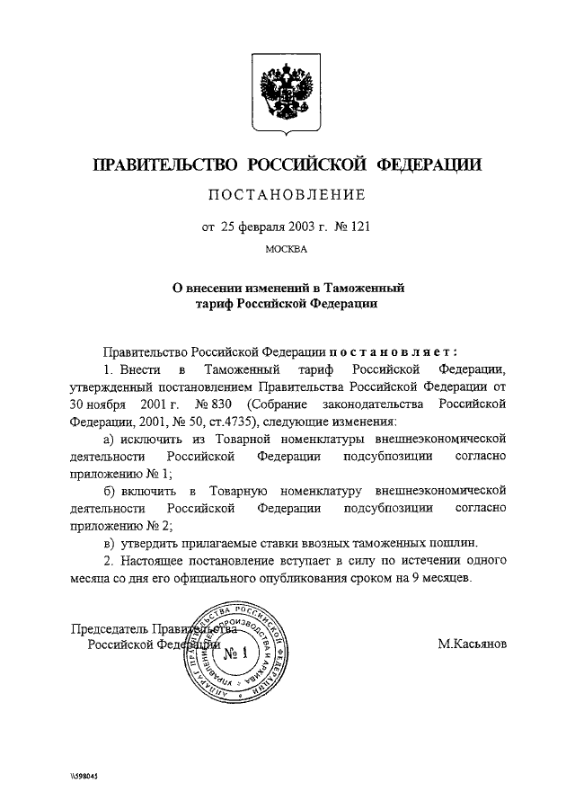 ПОСТАНОВЛЕНИЕ Правительства РФ от 25.02.2003 N 121