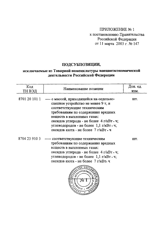 ПОСТАНОВЛЕНИЕ Правительства РФ от 11.03.2003 N 147