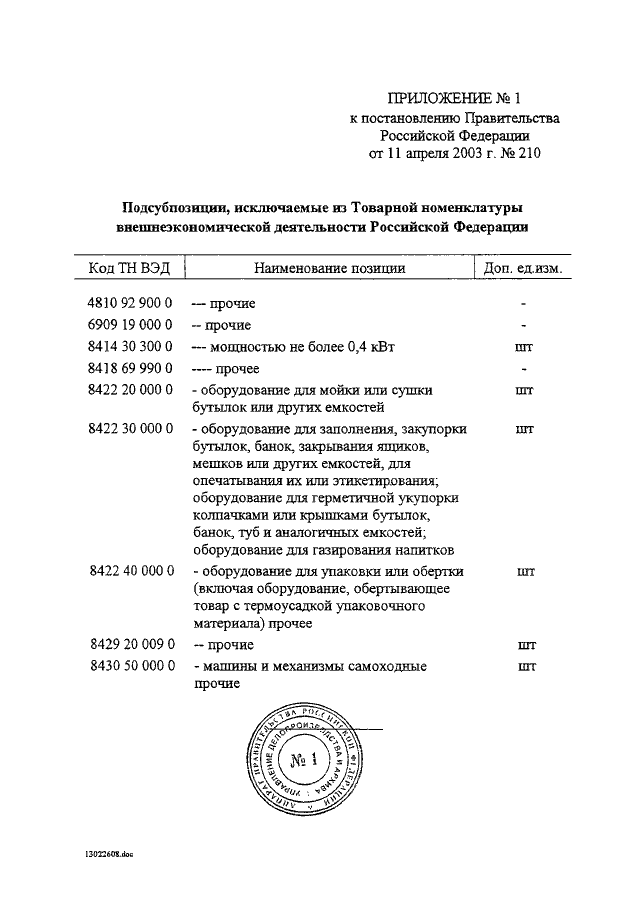 ПОСТАНОВЛЕНИЕ Правительства РФ от 11.04.2003 N 210