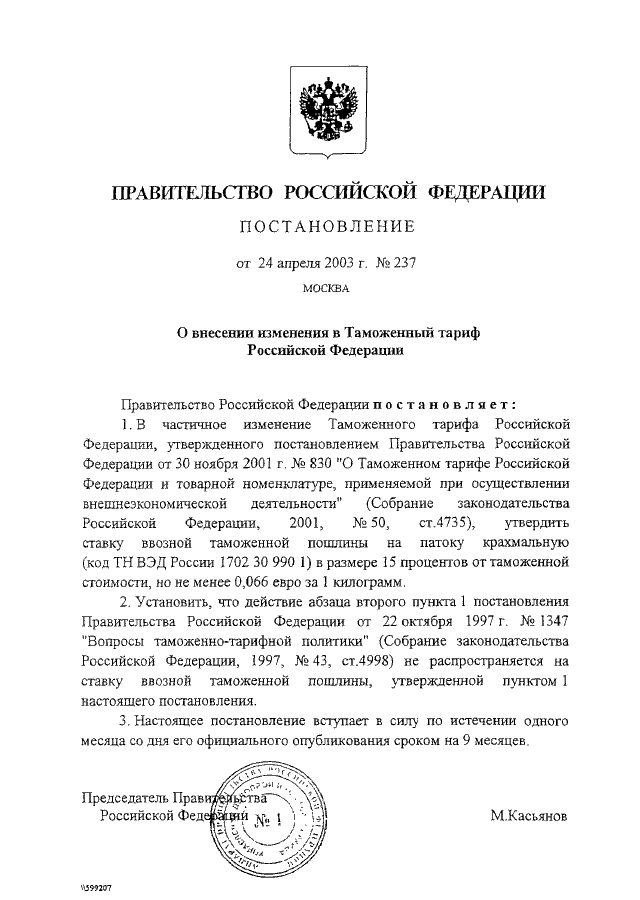 ПОСТАНОВЛЕНИЕ Правительства РФ от 24.04.2003 N 237