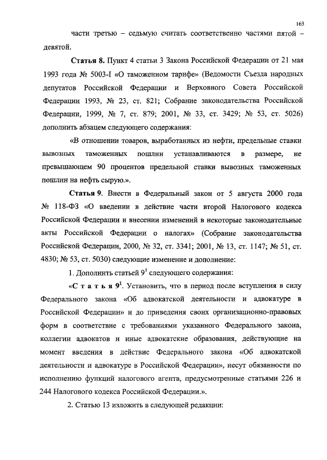 "О ВНЕСЕНИИ ИЗМЕНЕНИЙ И ДОПОЛНЕНИЙ В ЧАСТЬ ВТОРУЮ НАЛОГОВОГО КОДЕКСА РОССИЙСКОЙ ФЕДЕРАЦИИ И В ОТДЕЛЬНЫЕ ЗАКОНОДАТЕЛЬНЫЕ АКТЫ РОССИЙСКОЙ ФЕДЕРАЦИИ"