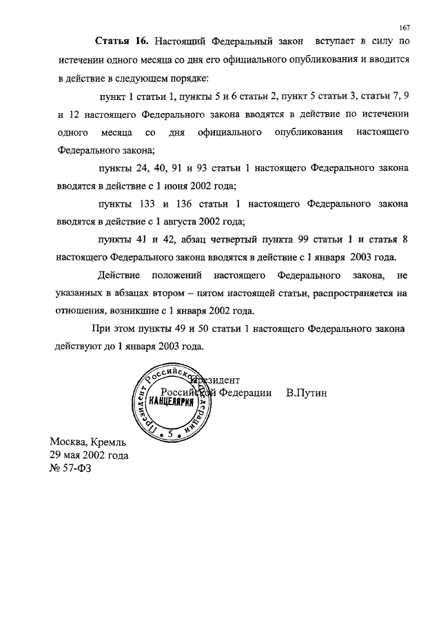 ФЕДЕРАЛЬНЫЙ ЗАКОН от 29.05.2002 N 57-ФЗ