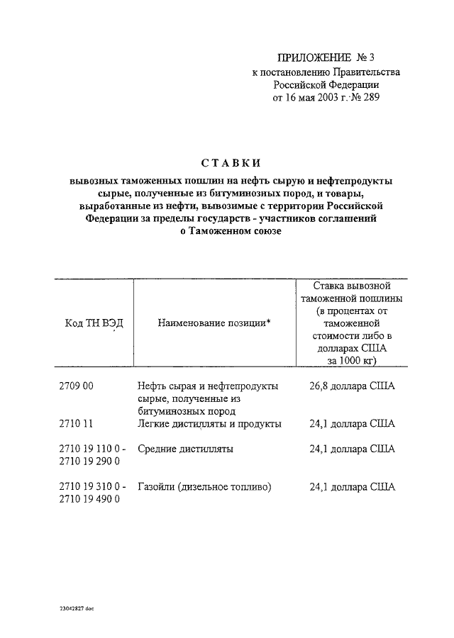 ПОСТАНОВЛЕНИЕ Правительства РФ от 16.05.2003 N 289