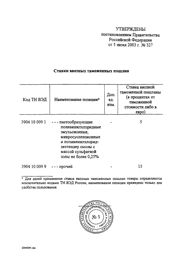 ПОСТАНОВЛЕНИЕ Правительства РФ от 05.06.2003 N 327
