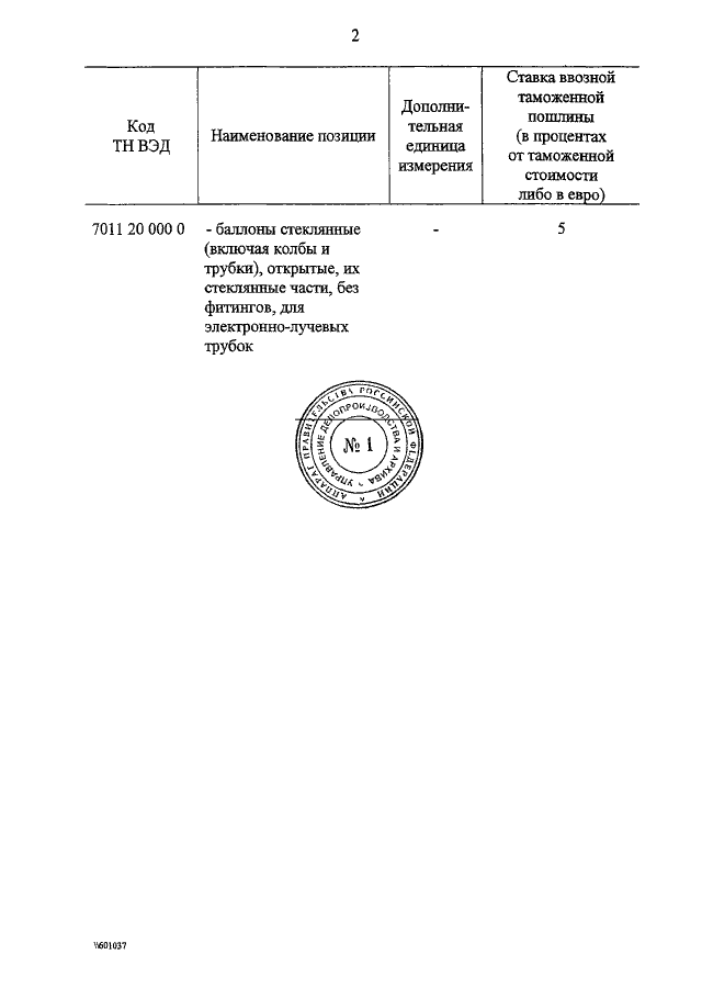 "О ВНЕСЕНИИ ИЗМЕНЕНИЙ В ТАМОЖЕННЫЙ ТАРИФ РОССИЙСКОЙ ФЕДЕРАЦИИ"