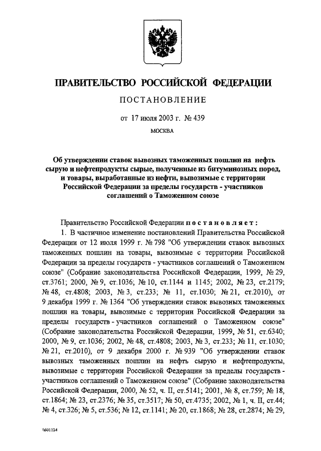 ПОСТАНОВЛЕНИЕ Правительства РФ от 17.07.2003 N 439