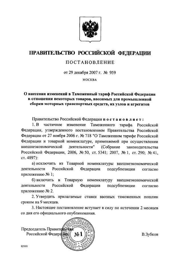 ПОСТАНОВЛЕНИЕ Правительства РФ от 29.12.2007 N 959