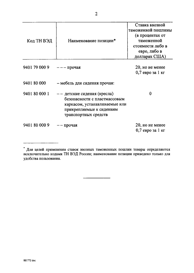 "О ВНЕСЕНИИ ИЗМЕНЕНИЙ В ТАМОЖЕННЫЙ ТАРИФ РОССИЙСКОЙ ФЕДЕРАЦИИ В ОТНОШЕНИИ ДЕТСКИХ СИДЕНИЙ БЕЗОПАСНОСТИ"