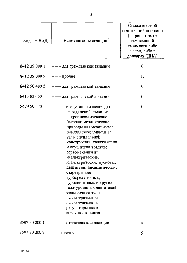 "О ВНЕСЕНИИ ИЗМЕНЕНИЙ В ТАМОЖЕННЫЙ ТАРИФ РОССИЙСКОЙ ФЕДЕРАЦИИ В ОТНОШЕНИИ ОТДЕЛЬНЫХ ВИДОВ ЗАПАСНЫХ ЧАСТЕЙ, АГРЕГАТОВ И ОБОРУДОВАНИЯ ДЛЯ ВОЗДУШНЫХ СУДОВ, А ТАКЖЕ В ОТНОШЕНИИ АВИАЦИОННЫХ ТРЕНАЖЕРОВ"