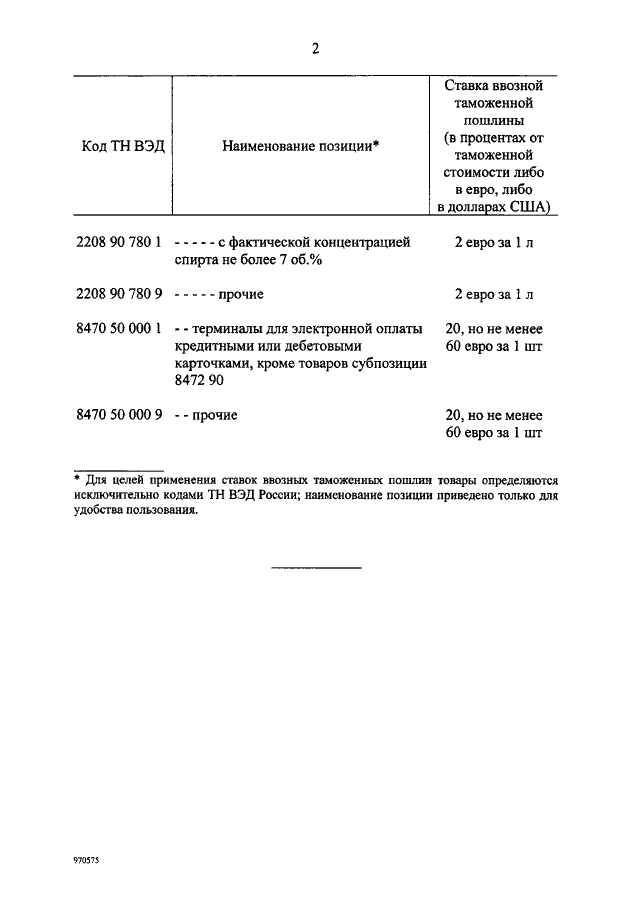 "О ВНЕСЕНИИ ИЗМЕНЕНИЙ В ТАМОЖЕННЫЙ ТАРИФ РОССИЙСКОЙ ФЕДЕРАЦИИ В ОТНОШЕНИИ НЕКОТОРЫХ СПИРТОСОДЕРЖАЩИХ НАПИТКОВ, А ТАКЖЕ ТЕРМИНАЛОВ ДЛЯ ЭЛЕКТРОННОЙ ОПЛАТЫ КРЕДИТНЫМИ ИЛИ ДЕБЕТОВЫМИ КАРТОЧКАМИ"