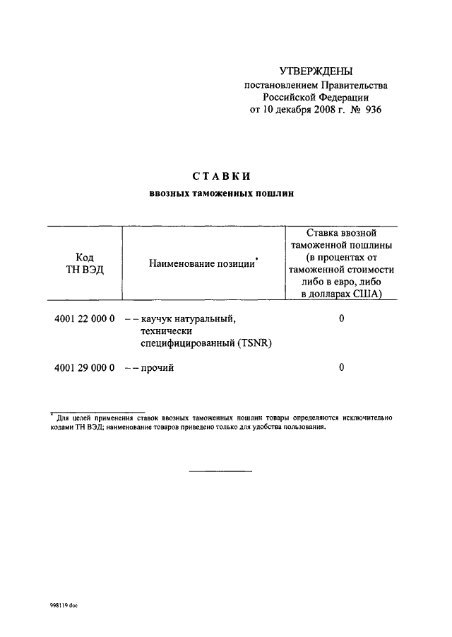 ПОСТАНОВЛЕНИЕ Правительства РФ от 10.12.2008 N 936