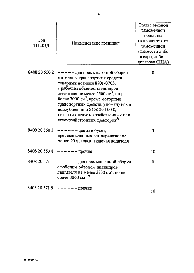 "О ВНЕСЕНИИ ИЗМЕНЕНИЙ В ТАМОЖЕННЫЙ ТАРИФ РОССИЙСКОЙ ФЕДЕРАЦИИ В ОТНОШЕНИИ НЕКОТОРЫХ ТОВАРОВ, ВВОЗИМЫХ ДЛЯ ПРОМЫШЛЕННОЙ СБОРКИ МОТОРНЫХ ТРАНСПОРТНЫХ СРЕДСТВ, ИХ УЗЛОВ И АГРЕГАТОВ"