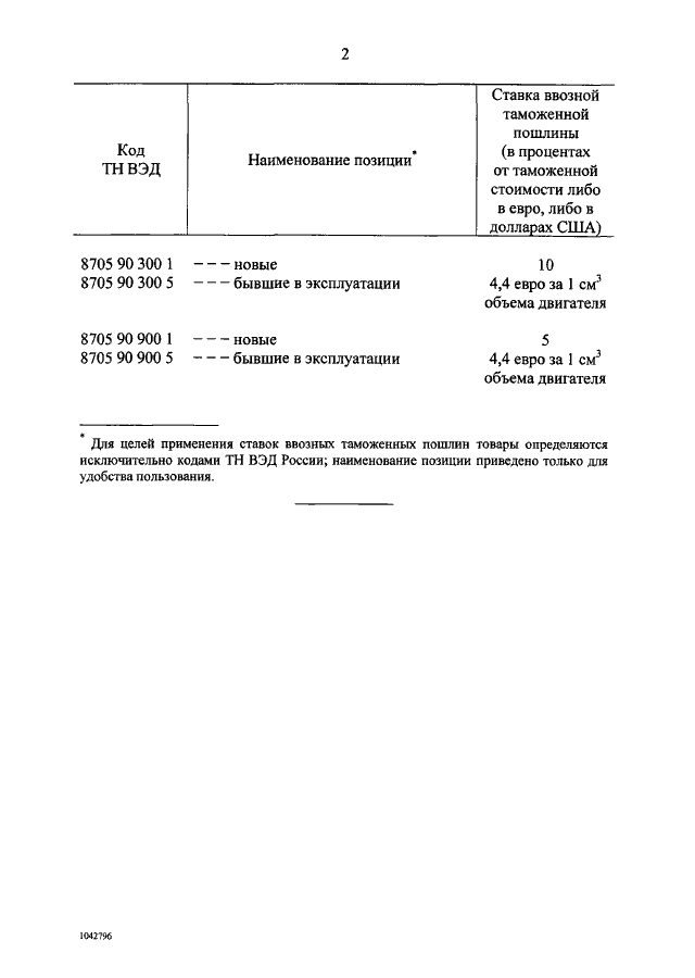 "О ВНЕСЕНИИ ИЗМЕНЕНИЙ В ТАМОЖЕННЫЙ ТАРИФ РОССИЙСКОЙ ФЕДЕРАЦИИ В ОТНОШЕНИИ МОТОРНЫХ ТРАНСПОРТНЫХ СРЕДСТВ СПЕЦИАЛЬНОГО НАЗНАЧЕНИЯ"