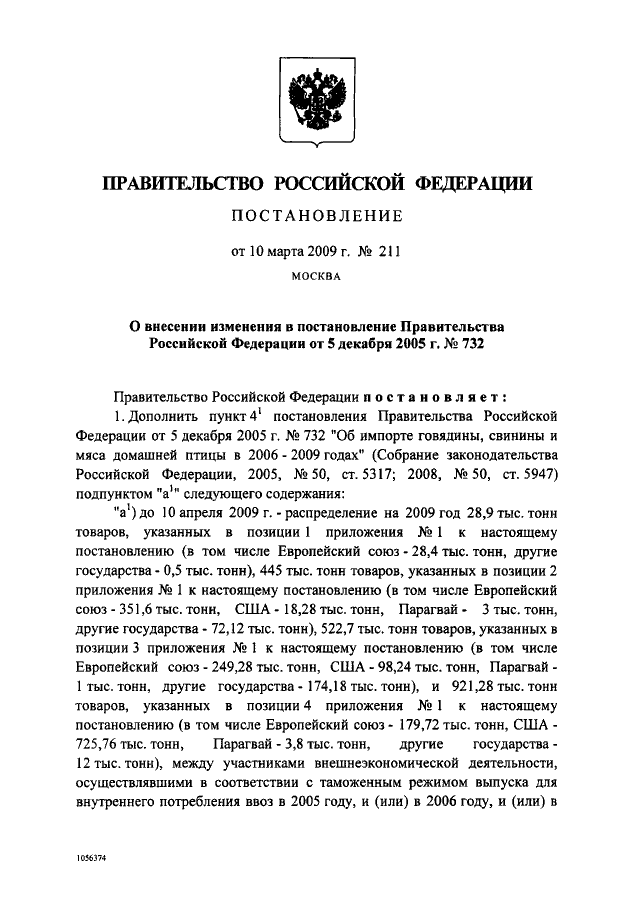 ПОСТАНОВЛЕНИЕ Правительства РФ от 10.03.2009 N 211