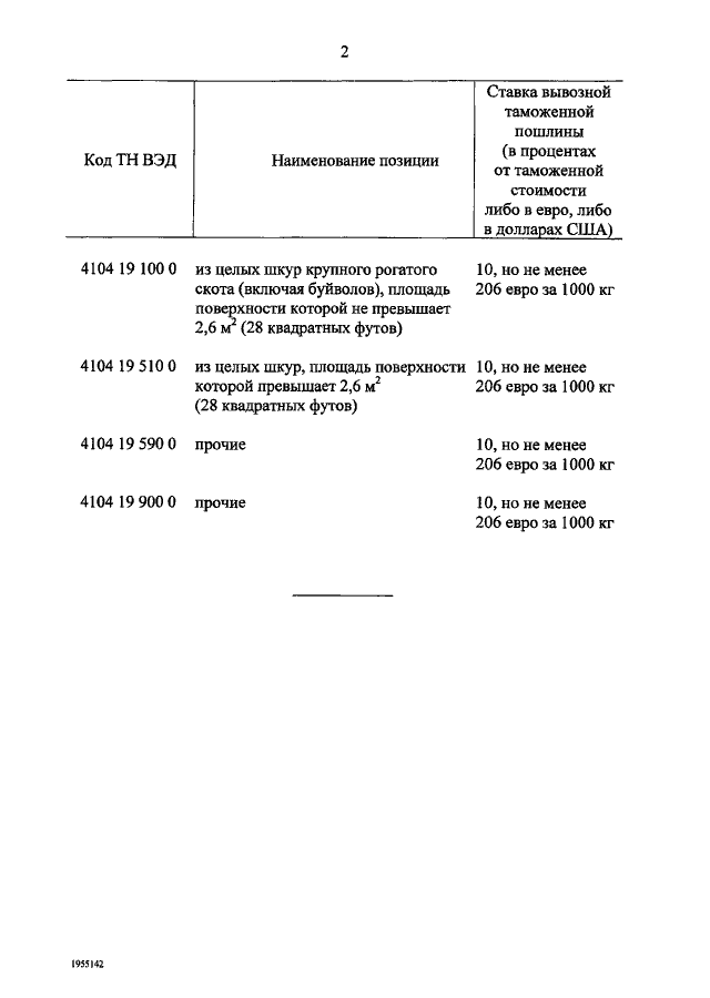 "О СТАВКАХ ВЫВОЗНЫХ ТАМОЖЕННЫХ ПОШЛИН НА КОЖЕВЕННЫЙ ПОЛУФАБРИКАТ"