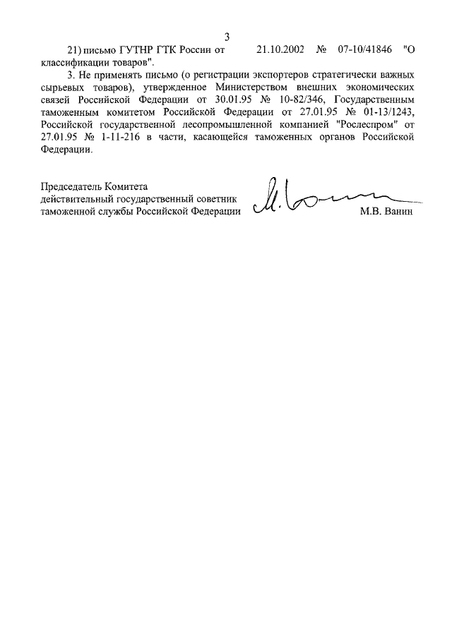 ПРИКАЗ ГТК РФ от 08.09.2003 N 997