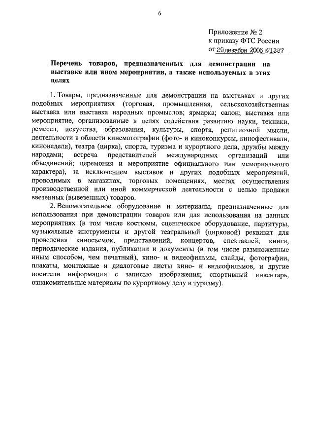 ПРИКАЗ ФТС РФ от 29.12.2006 N 1387