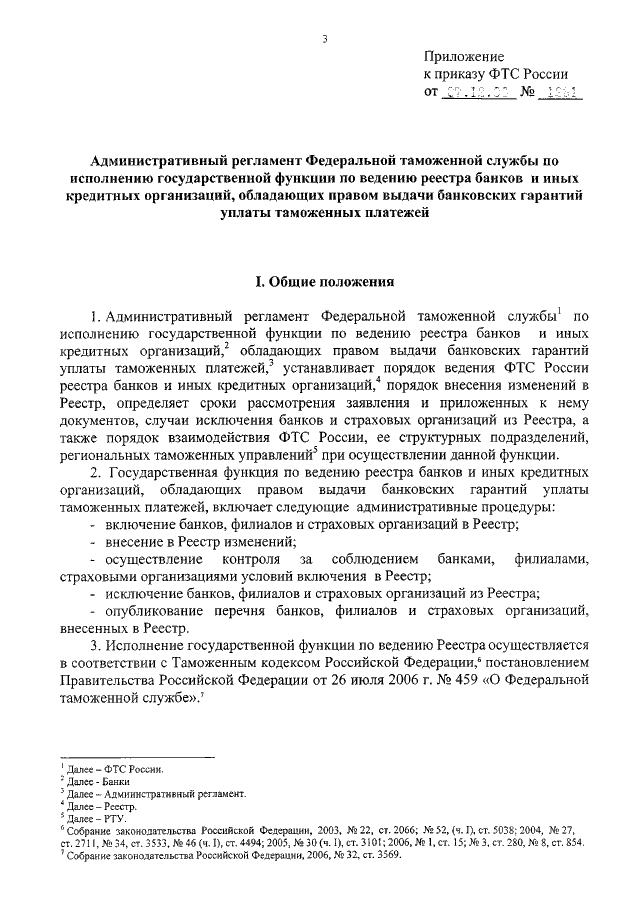 "ОБ УТВЕРЖДЕНИИ АДМИНИСТРАТИВНОГО РЕГЛАМЕНТА ФЕДЕРАЛЬНОЙ ТАМОЖЕННОЙ СЛУЖБЫ ПО ИСПОЛНЕНИЮ ГОСУДАРСТВЕННОЙ ФУНКЦИИ ПО ВЕДЕНИЮ РЕЕСТРА БАНКОВ И ИНЫХ КРЕДИТНЫХ ОРГАНИЗАЦИЙ, ОБЛАДАЮЩИХ ПРАВОМ ВЫДАЧИ БАНКОВСКИХ ГАРАНТИЙ УПЛАТЫ ТАМОЖЕННЫХ ПЛАТЕЖЕЙ"