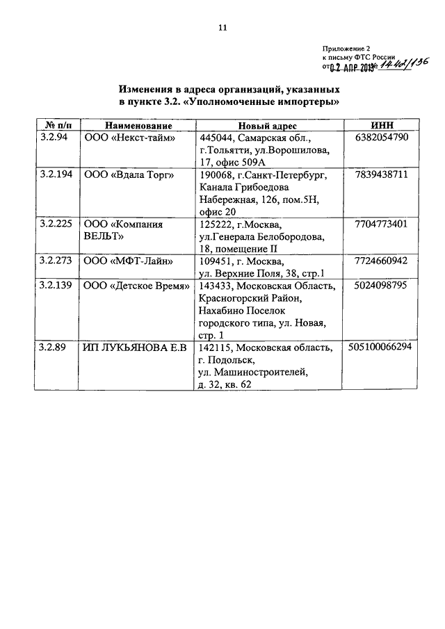 ПИСЬМО ФТС РФ от 02.04.2013 N 14-42/13640