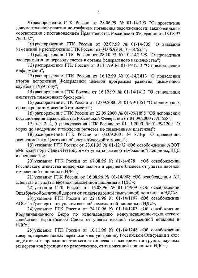 ПРИКАЗ ГТК РФ от 15.09.2003 N 1011