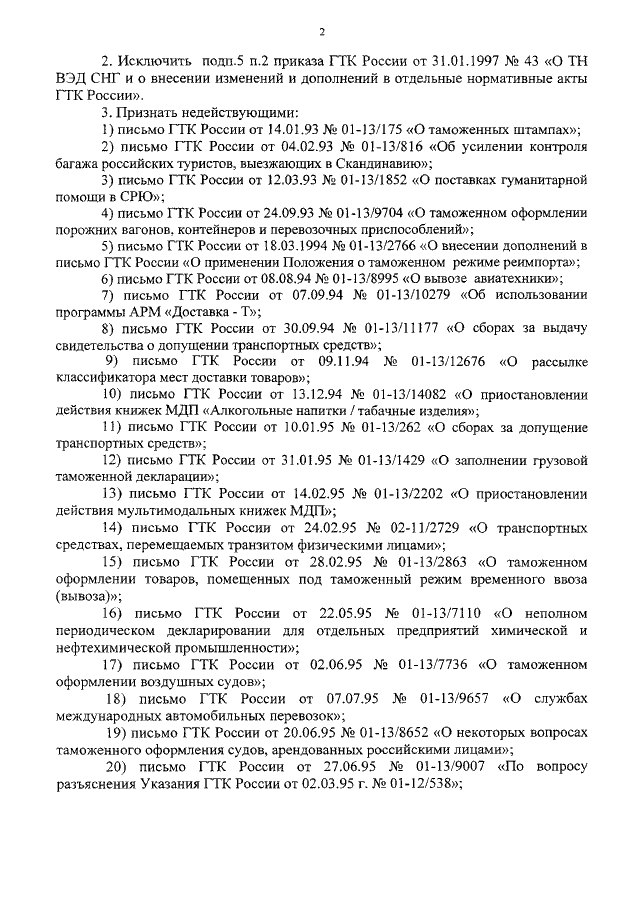 "О ПРИЗНАНИИ УТРАТИВШИМИ СИЛУ ПРАВОВЫХ АКТОВ ГТК РОССИИ ПО ВОПРОСАМ ОРГАНИЗАЦИИ ТАМОЖЕННОГО КОНТРОЛЯ"