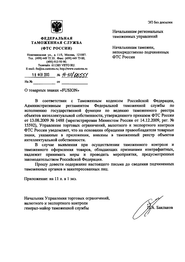 ПИСЬМО ФТС РФ от 18.02.2013 N 14-42/06551