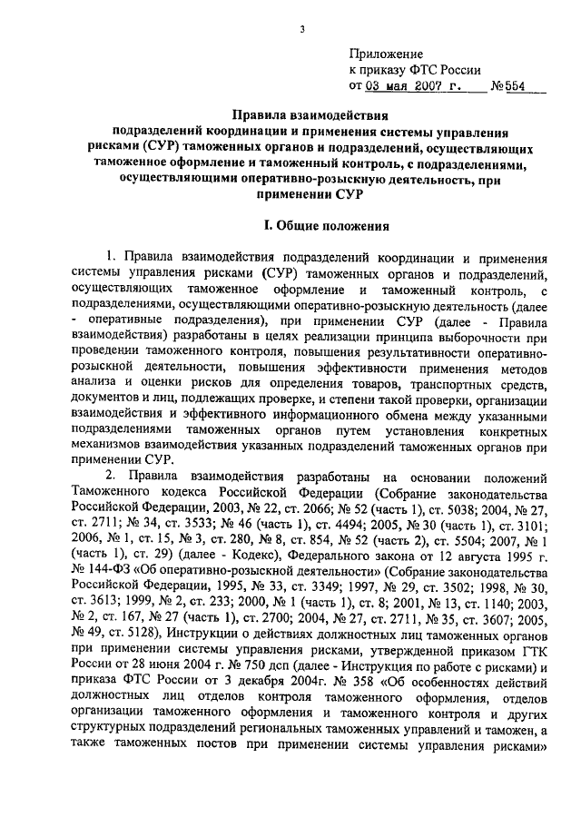 ПРИКАЗ ФТС РФ от 03.05.2007 N 554