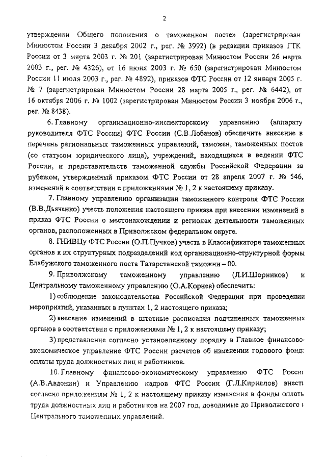 ПРИКАЗ ФТС РФ от 14.05.2007 N 587