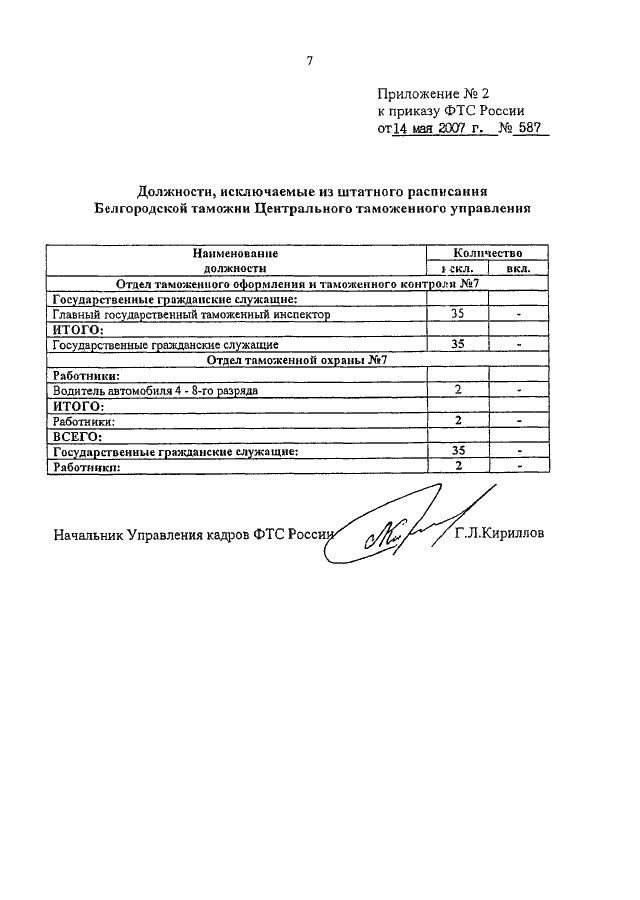 ПРИКАЗ ФТС РФ от 14.05.2007 N 587